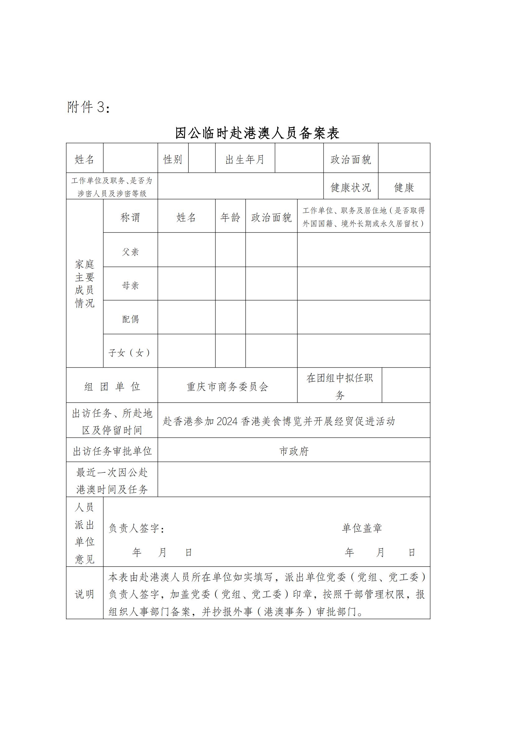 重庆市商务委员会关于组团赴香港参加 2024 年香港美食展暨商贸博览并开展招商引资活动的通知